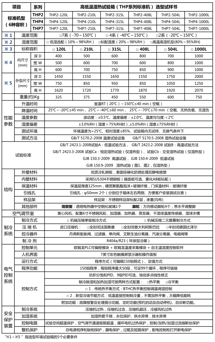 富易達FUYIDA-THP系列-高低溫交變濕熱試驗箱| 選型參數表
